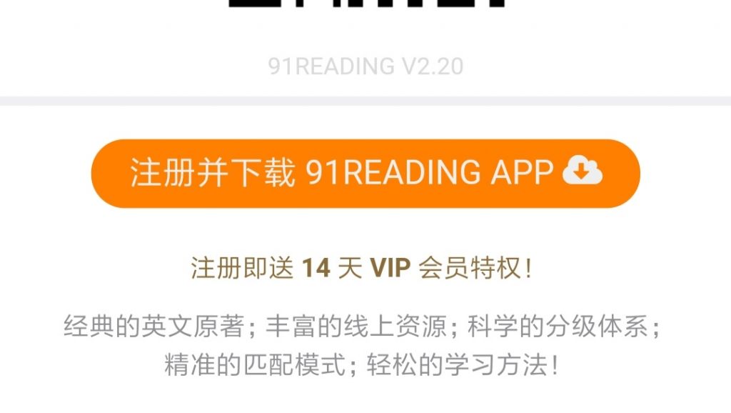 点击【注册并下载91READING APP】橙色按钮。